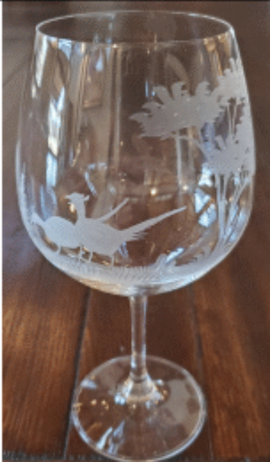 Etched Pheasant Wine Glasses